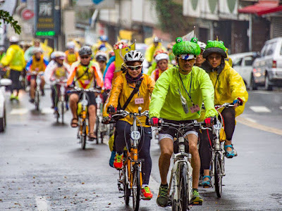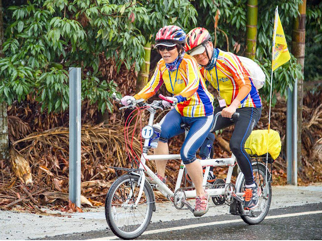 | 展翼協力車隊由志工帶領,不畏風雨前進。 展翼視障協力車隊提供 |