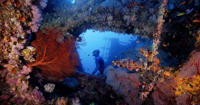 台灣海洋生態紀錄片「沈睡的水下巨人」片中,除了繽紛綺麗、各式各樣的魚群外,自由潛水者Pepe Arcos在魚群與沉船間穿梭的英姿更是一大看點。李景白透露,Pepe Arcos本身就是非常頂尖的自由潛水者,可以一口氣潛入水下80米。