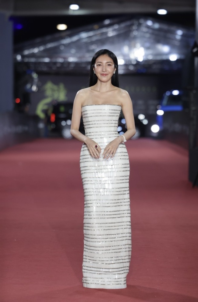 柯佳嬿今晚身著白色寬版襯衫搭配黑色窄裙禮服登場,飄逸襯衫微微露出後背與腰部,大氣不失性感;謝盈萱則是細肩帶搭配腰部鏤空的黑禮服,俐落大方。