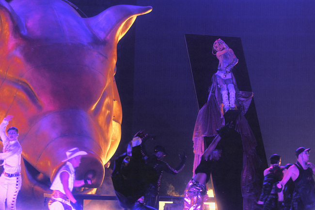 (中央社記者王心妤台北1日電)歌手蔡依林今晚舉辦第3場台北大巨蛋PLEASURE演唱會,她站上耗資新台幣3600萬元打造、從美國包機來台的大道具「貪婪金豬」熱唱,金豬噴出假鈔與觀眾互動,讓歌迷驚呼聲不斷。