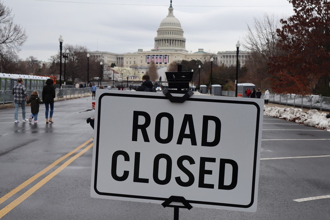 (中央社記者鍾佑貞華盛頓18日專電)白宮將迎來兩次閃過暗殺的新主人川普,美國執法機構繃緊神經,從國會大廈到白宮處處可見柵欄及路障,越靠近主建築越綿密。距白宮2.4公里外的林肯紀念堂則有抗議人士頂著低溫繞行,警方沿途緊盯,不敢大意。