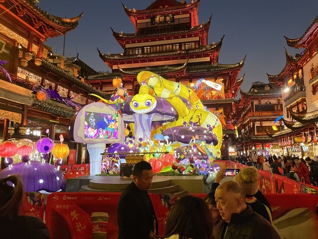 據上海市政府微信公眾號「上海發布」,2025年豫園燈會延續去年經典神話古籍「山海經」主題,講述「山海奇豫記」叢林篇的故事。共有5大主題燈區,結合今年的生肖「蛇」,呈現山海林木間百鳥百獸交錯和諧的場景。
