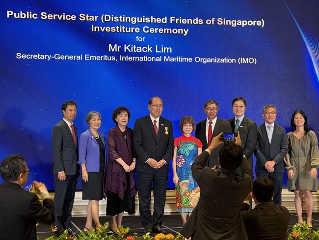 國際海事組織(International Maritime Organization)前秘書長林基澤(Kitack Lim)26日在新加坡獲頒公共服務星章-新加坡卓越之友獎(The Public Service Star,Distinguished Friends of Singapore),表揚他為全球海事運輸發展貢獻。