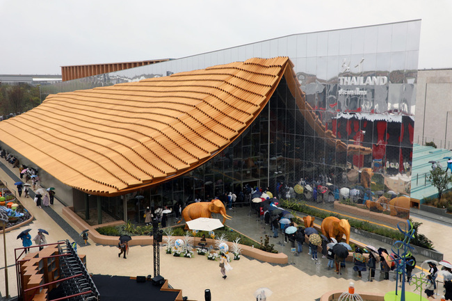 另外,13日開幕第一天的下午下起大雨,氣溫瞬間下降,許多民眾躲到「大屋頂環」下方避雨,但是人工島夢洲會場位於海上,每當強風一吹、雨水順勢打進來。