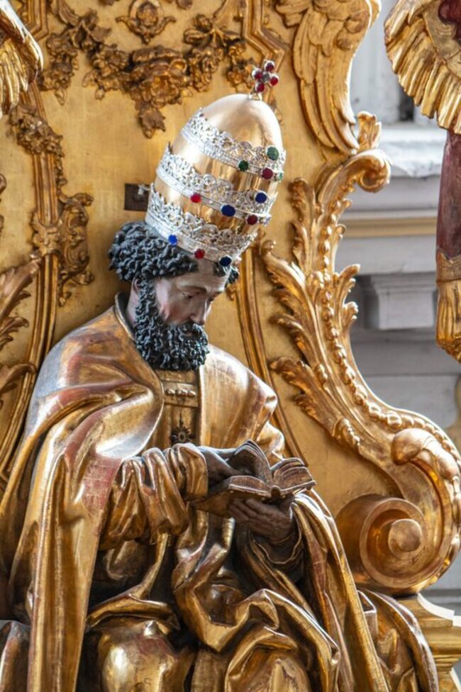 祭壇中央矗立著一尊金色的聖伯多祿雕像,雕像由文藝復興時期雕刻家葛拉瑟(Erasmus Grasser)於1492年創作,至今已有逾500年歷史。