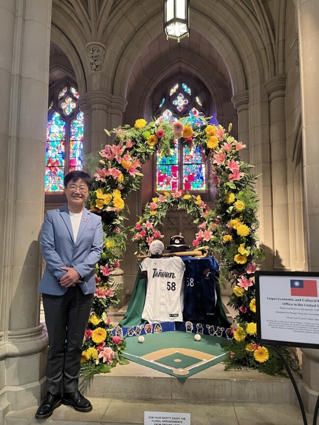 駐美代表處表示,棒球運動在美國非常受歡迎,同樣也廣受台灣民眾喜愛,每逢重要賽事,球迷歡呼鼓舞、力挺台灣隊的場景,總讓人感到熱血沸騰。因此,代表處以色彩鮮明的花材,展現台灣人對棒球的熱情,並象徵台灣球員在賽事中奮戰的精神,也盼以此作品,預祝Team Taiwan在2026年世界棒球經典賽奪得佳績。