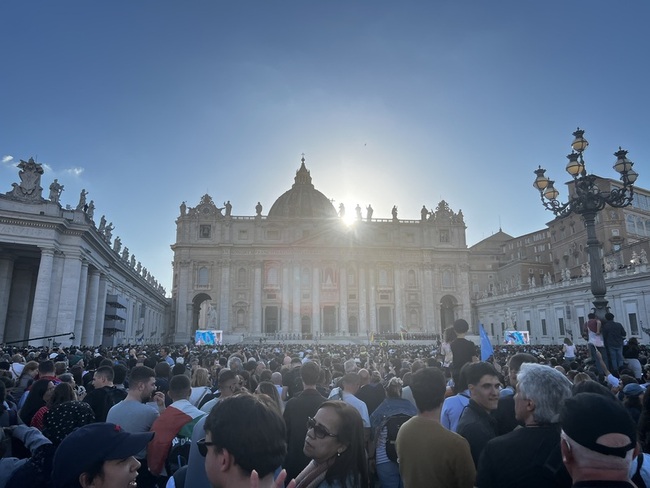 梵蒂岡廣場前方的協和大道,被持續湧入人潮塞得水洩不通,警察在許多出入口拉起封鎖線,示意此處空間已滿,後方人群仍不斷推擠大喊「讓我們進去」,顯示天主教領袖強大獨特的群眾魅力。根據梵蒂岡官網估計,現場群眾約有10萬人。