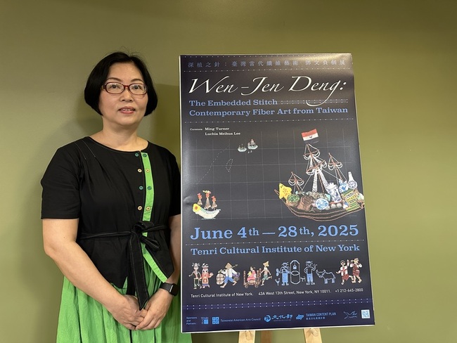 鄧文貞的當代纖維藝術展「深植之針-臺灣當代纖維藝術」,由文化部「匯聚臺流文化黑潮計畫」支持,台美文藝協會協辦,4日至28日在紐約天理文化學院藝廊(Tenri Cultural Institute of New York)展出。(編輯:田瑞華)1140606