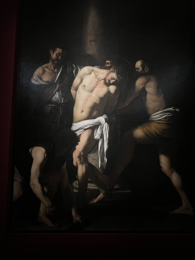 在「羅馬與拿坡里間的神聖劇情」展區,則呈現卡拉瓦喬藝術生涯的分水嶺,自此他幾乎完全投入宗教性畫作,展出作品包括「基督的鞭刑」(Flagellation of Christ),以及收藏在西班牙普拉多美術館(Museo Del Prado)的「看哪這人」(Ecce Homo),這個作品是歷經數世紀後首度回到義大利展示。(編輯:高照芬)1140617