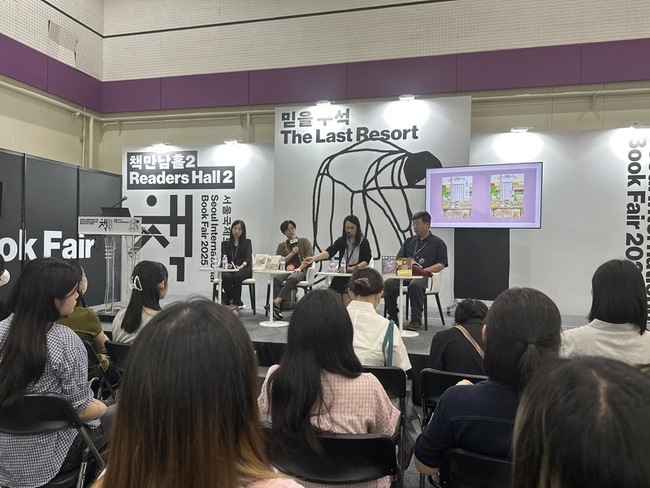首爾國際書展18日至22日在首爾COEX展覽中心舉行,楊双子、瀟湘神今天以「嚴肅的命題,娛樂的手段:百合、奇幻、妖怪、美食裡的歷史傷痕」為題,與讀者分享寫作契機與作品背後的台灣。