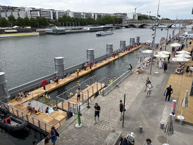 巴黎2016年啟動的「游泳計畫」,由法國政府與巴黎市政府共同推動,旨在改善塞納河與其上游馬恩河(Marne)的水質。去年巴黎奧運塞納河為三鐵等開放水域游泳比賽場地,當時市府就承諾,今年夏天要讓民眾下水消暑,使河川整治成為巴奧留下的重要資產。
