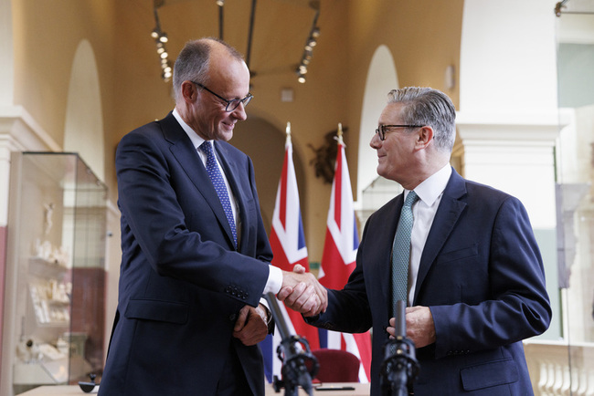 今天是梅爾茨(Friedrich Merz)今年5月上任後,首次以總理身分正式訪問英國。英德雙方簽署「友誼與雙邊合作條約」,標定在安全防衛、科技、經貿、外交、移民等領域的深化合作方向,其中一大亮點為英德雙方將在軍工業加強合作,包括軍備出口。
