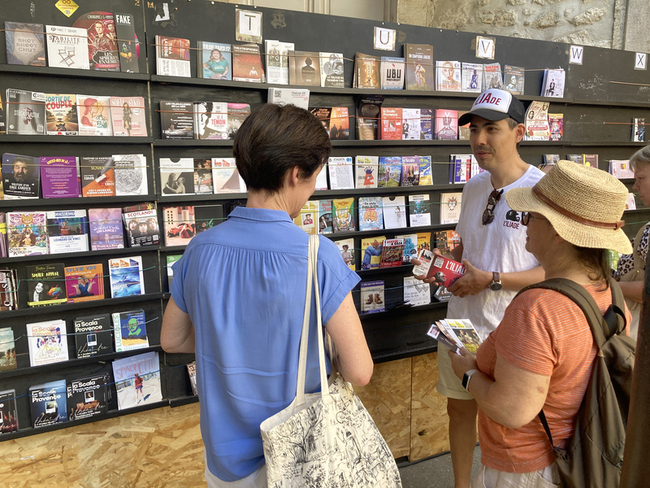 年年來外亞藝術節報到的法國觀眾慕莉兒(Muriel)向中央社記者說,因為待在亞維儂時間有限,如何從眾多節目中選擇,劇場海報小卡成為重要的參考資訊。她會在第一時間藉由圖像設計確認喜好,再依據文字介紹了解內容。