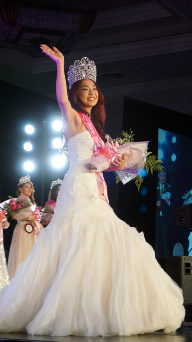 最終戴上后冠的王怡文(Ami Wang)目前任職洛杉磯市中心一家高級珠寶公司,她畢業於美國寶石學院(Gemological Institute of America)受過珠寶工匠訓練。今天她的才藝表演就是結合影片與現場解說,介紹珠寶藝術。