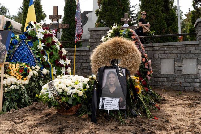 曾擔任羅什奇娜編輯的維多莉亞‧科洛米耶茨 (Viktoriia Kolomiiets)站在墓前獻花致意,神情哀傷。她向記者回憶,過往曾因編輯錯誤遭羅什奇娜糾正,「有次她半夜打電話來說要補充段落。」