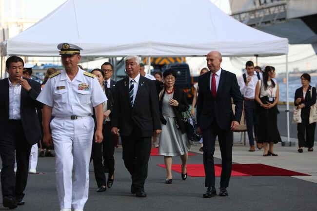 日本防衛大臣中谷元致詞時強調,「這次威爾斯親王號的到來,象徵歐洲與印太地區的安全保障是不可分的…是對地區的穩定釋出一大訊息,深具意義」。