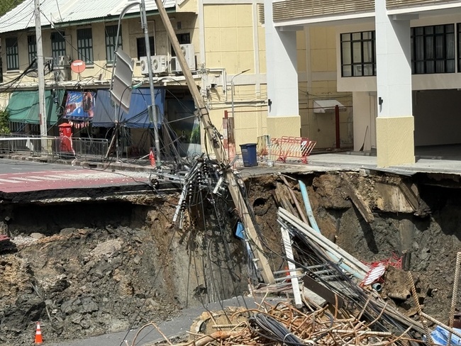 查察說,因泥土流入了隧道導致周圍建物倒塌,還有一條大型水管破裂。他補充,另一個關鍵問題是下雨,因雨水可能導致更多泥土流入坑洞,目前已成立一個特別小組針對可能的情況進行評估和準備因應工作。