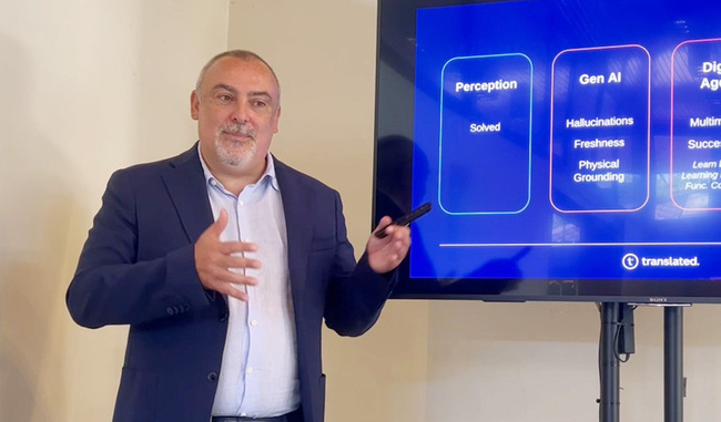 1999年成立的Translated.是全球AI翻譯領導品牌,可翻譯超過200種語言,合作客戶包括歐盟、世界衛生組織、Google、Airbnb、IBM等。中央社等外國媒體記者昨天受邀,與現任執行長、資訊科學家特隆波第(Marco Trombetti)座談。