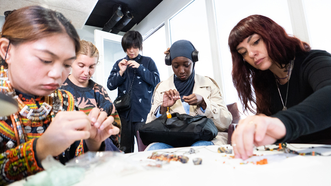 校外人士柯琳(Corine)熱愛紡織藝術。她說當得知有串珠項鍊工作坊後,便迫不及待地報名參加。這場活動讓她得以親身接觸遙遠的文化,並在實作中獲得快樂,然而,串珠過程比她想像中困難,因為需要保持規律並和諧的手感。