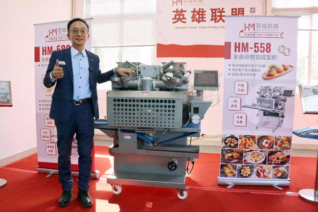 百城機械主辦的英雄聯盟新品發表會今天在江蘇省蘇州市登場,以「效率革命與創意量化的決勝點」為主題,現場有烘焙業品牌介紹及大師秀,訴求只要有適當的配方,精良機器也能模擬出職人手工包餡的口感。