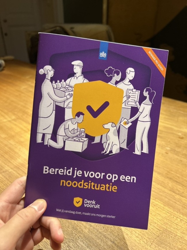 從今年11月25日開始,荷蘭政府向民眾發送安全指南手冊「為緊急狀況做好準備」(Bereid je voor op een noodsituatie),其目的是提升荷蘭民眾對氣候變化、戰爭或網路攻擊等災害的警戒,並了解可能的後果。