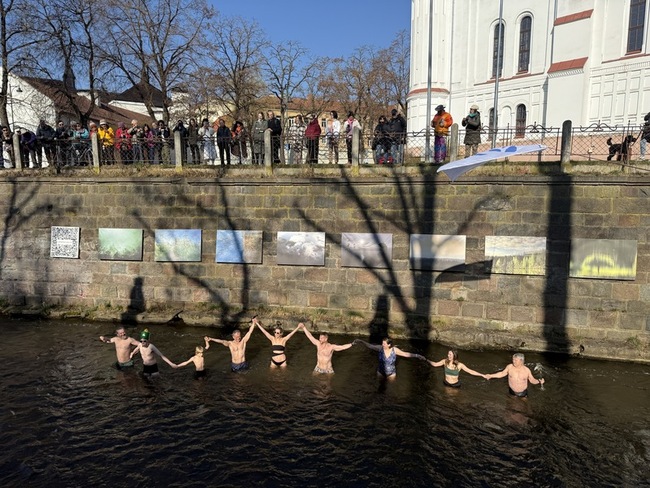 今年為「對岸共和國」建國28週年,慶祝活動依循傳統,以跳入維爾尼亞河(Vilnia River)揭開序幕。昨天氣溫僅約攝氏7度,仍吸引不少民眾不畏低溫參與。