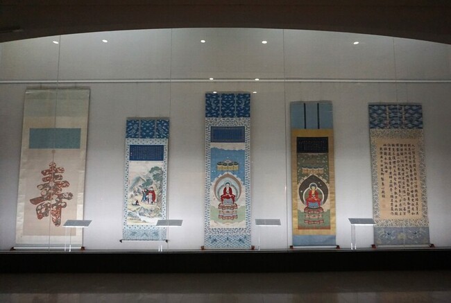 「織造精彩—清宮緙絲刺繡展」精選故宮院藏緙繡珍品,分為「清宮收藏古代緙繡」、「織造華美緙繡」與「以御筆書畫詩文為中心的織繡」3大單元。亮點展品為國寶「緙絲富貴長春軸」,它為存世宋緙精品,以藍色絲線為底,交織牡丹、菊花、芙蓉等花卉,緙工細密,色彩明麗,寓意「富貴長春」。
