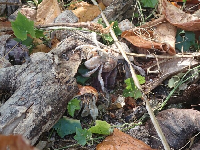 經外部形態及DNA分析,島上共有3種陸寄居蟹,分別是「皺紋陸寄居蟹 (Coenobita rugosus)」、「短掌陸寄居蟹 (Coenobita brevimanus)」及「橙紅(珠粒)陸寄居蟹(Coenobita perlatus)」。
