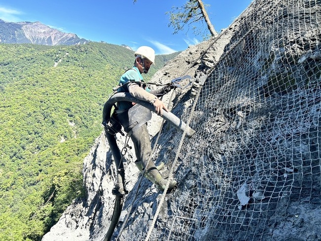 交通部公路局關山工務段長林進芳今天上午告訴中央社記者,台東縣海端鄉台20臨105線41K+700路段(南橫公路向陽路段)進行上邊坡掛網岩栓噴凝土護坡等工程,由於刷坡掛網時碎石會飛濺至路面,影響用路人行車安全,但受限施工路段路幅狹窄,工區位置坡面陡峭且腹地不足,無法闢設施工便道,又考量碎石掉落清理路面等施工機具須占用道路方能施作。