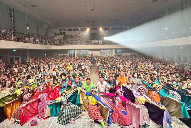 (中央社記者黃國芳嘉義縣30日電)紙風車劇團今晚在嘉義縣布袋鎮布新國小演出「紙風車的魔法書」,吸引逾1000名大小朋友擠爆會場,大家沉浸在劇團用心打造的魔法世界,現場歡笑與驚呼聲不斷。