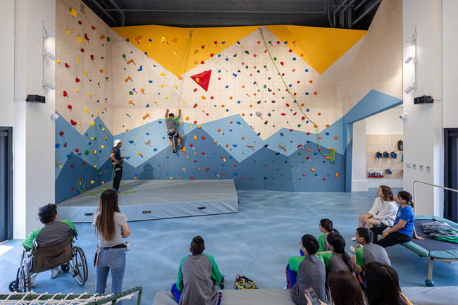 國立台東大學附屬特殊教育學校則打造全台首座特教生室內攀岩場,建築師林可方與陳宣如以原民神話繪本「樹上的魚:Lokot鳥巢蕨」為設計靈感,將原本使用率不高的階梯教室,轉化為探索場域,結合不同挑戰強度的攀岩設施和多元攀爬區,讓不同能力的特教學生都能探索自我與強化肢體發展。