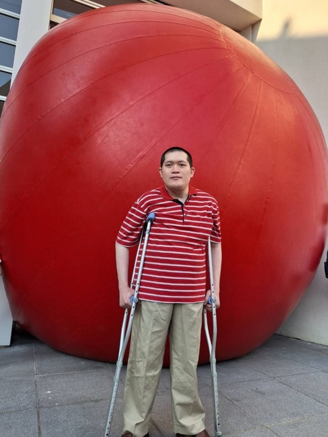 目前就讀台南大學數位學習科技學系博士班的詹博丞,因「點狀軟骨錯生症」視力和聽力持續退化,國中時又發生意外,從此不良於行。