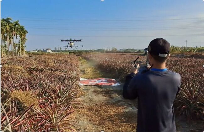 農藥所今天發布新聞稿表示,為強化鳳梨產業害蟲防治效能,推動智慧農業應用,在高雄區農業改良場及農業藥物試驗所合作下,2024年起在屏東縣南州鄉,實施無人機施藥田間試驗,以核准藥劑及精準相關飛行操作參數防治鳳梨粉介殼蟲。