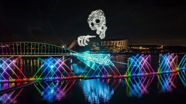 (中央社記者黃國芳嘉義縣27日電)故宮南院於暑期舉辦的「夏日親子藝術月暨水舞展演」系列活動於今天起登場,受矚目的7月5日無人機展演,今年展演經典浮世繪圖案及葛飾北齋「神奈川沖浪裏」的大浪。