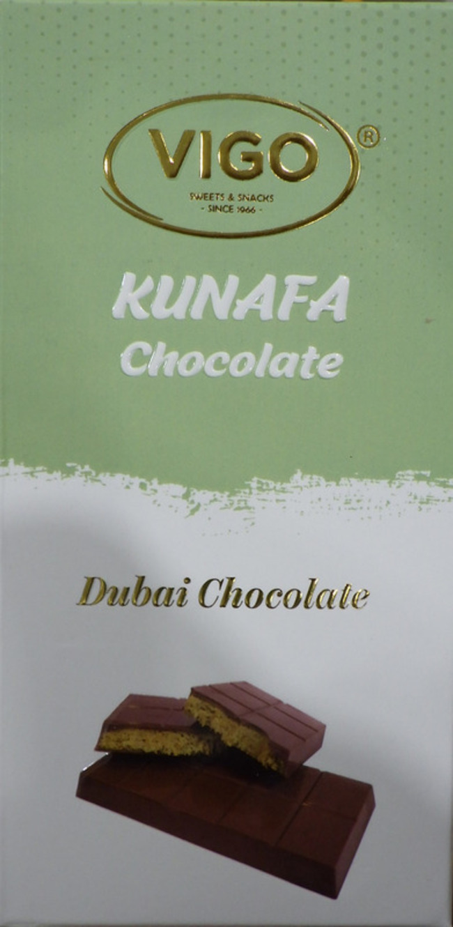 一家業者輸入產地為阿拉伯聯合大公國的「含餡巧克力(VIGO KUNAFA CHOCOLATE)」,在這次不合格名單當中,食藥署北區管理中心主任鄭維智向媒體說明,這批產品被檢出防腐劑去水醋酸0.05g/kg,含量不符規定,全數160公斤在邊境必須退運或銷毀
