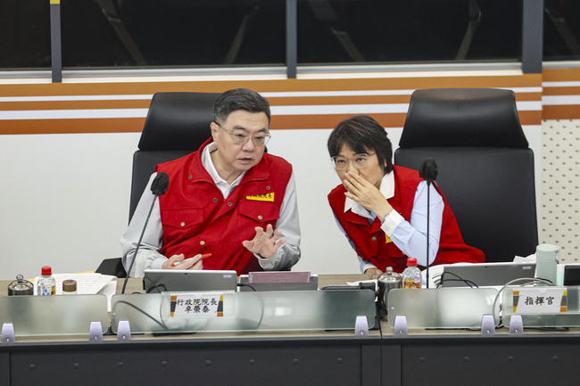 中央災害應變中心上午召開第4次會報,卓榮泰到場視導、聽取工作報告,並和澎湖縣、屏東縣、台東縣、高雄市、台南市和金門縣視訊。