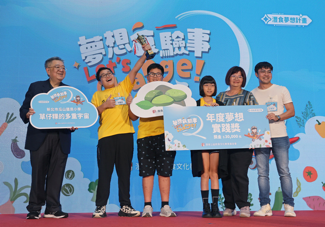 (中央社記者汪淑芬台北10日電)灃食公益飲食文化教育基金會今天舉行「第二屆灃食夢想計畫─夢想食驗事」頒獎典禮,9組學童組成的團隊分享成果,最大獎由新北市瓜山國小「草仔粿的多重宇宙」獲得。