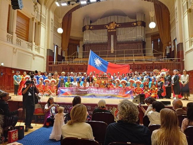 (中央社記者劉郁葶布拉格16日專電)首屆「台灣文化日」15日於捷克布拉格史麥塔納音樂廳盛大舉行,由台灣捷克藝術文化交流協會策劃,集結台灣7個表演團隊,展現台灣文化的深厚底蘊與創新精神。團員們壓軸演出,在台上舞動巨幅中華民國國旗,現場氣氛熱鬧。