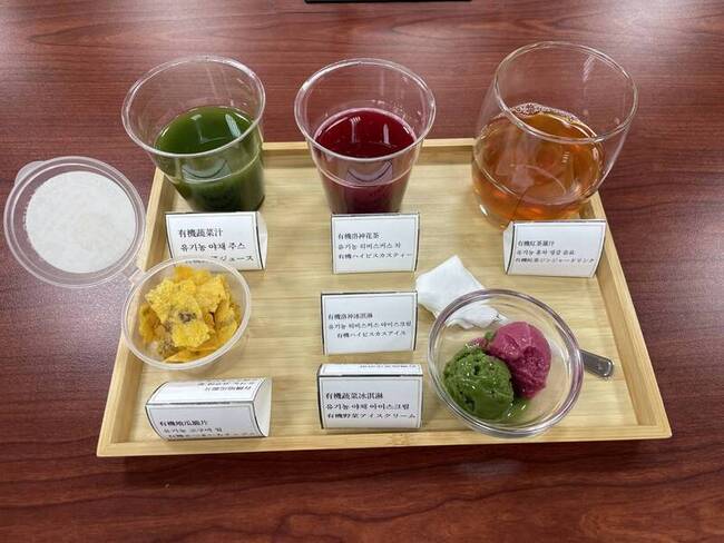 農訓協會轉述,日韓外賓見證到台灣農會新產品的創意,對品嚐到的有機蔬菜冰淇淋讚不絕口,另外對有機地瓜脆片、有機洛神花茶、有機紅茶薑汁、有機蔬菜汁也給予極高評價。