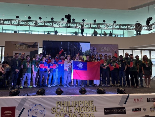 菲律賓模型愛好者是受到台灣多年舉辦模型國際公開賽激勵,而於去年首度舉辦菲律賓比例模型大賽,今年的規模更為盛大。頒獎儀式上,台灣團隊也拿中華民國國旗上禮台,與主辦單位人員合影留念。(編輯:唐佩君)1140803