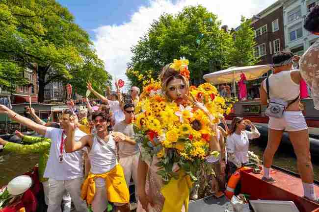 (中央社記者趙靜瑜台北5日電)阿姆斯特丹驕傲節(Amsterdam Pride)2日落幕,變裝皇后妮妃雅(Nymphia Wind)出席驕傲節電影閉幕座談,並以驚喜捧花造型領軍亞洲驕傲船,展現台灣多元文化價值。