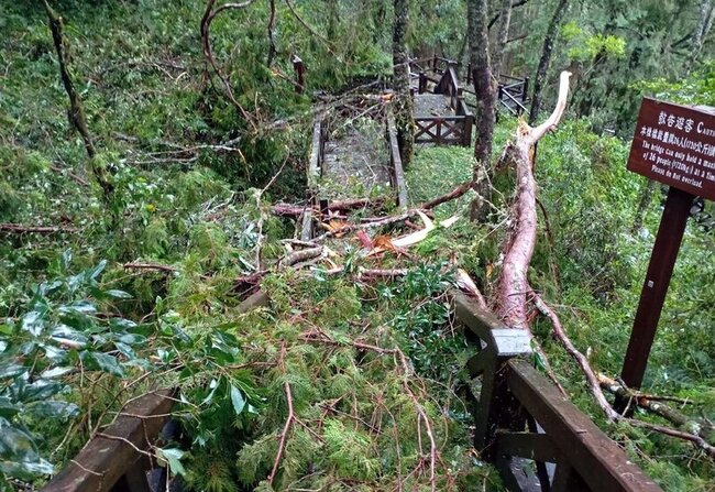 阿里山林業鐵路及文化資產管理處也發布訊息,受颱風影響,嘉義山區有間歇性大雨強風,林鐵明天將全面進行路線巡檢,阿里山林鐵本線及阿里山森林遊樂區支線在確認安全後,另行公告復駛時間,因此,林鐵全線明天持續停駛。