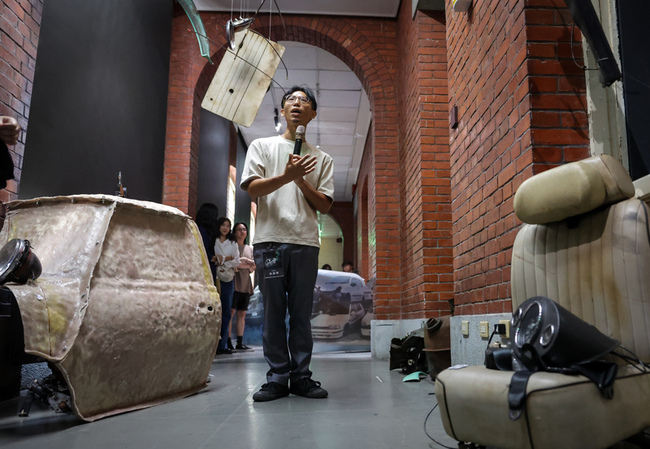 (中央社記者王寶兒台北15日電)轟隆隆車輛「臨停」美術館展間,瀰漫機具特有氣味,為「黑手煉金術III—吳建興個展」揭開序幕。吳建興說,謝謝父母讓他成長於黑手家庭,個展是他對黑手產業的回應與再詮釋。