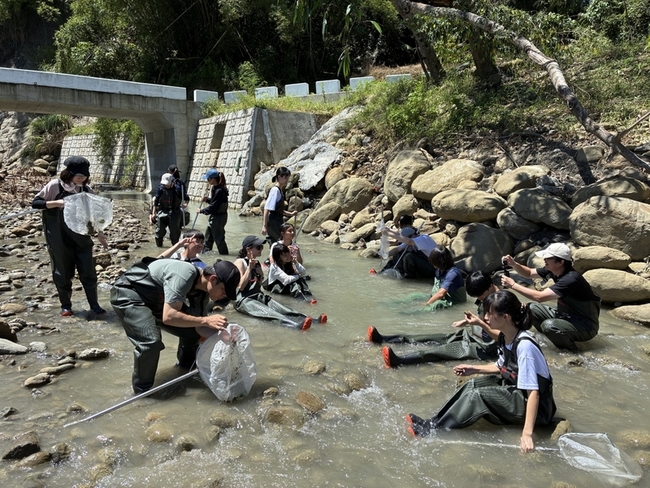 (中央社記者張榮祥台南19日電)日本早稻田大學附屬本庄高等學院師生日前造訪國立台南一中,兩校學生也前往曾文溪進行河川生態田野調查,實際觀察溪流生態,跨國共學。