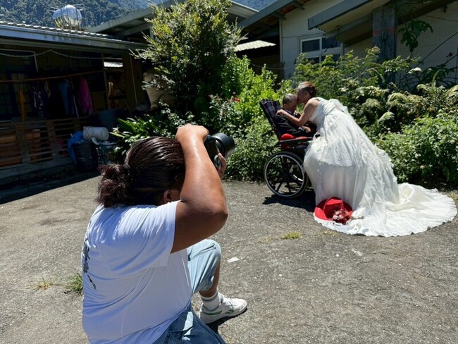 創世基金會草屯分院今天表示,羅娜部落61歲甘姓男子中風成為植物人5年,甘男妻子很想拍1張婚紗照作紀念,創世草屯院獲知決定幫甘妻圓夢,經多方尋找獲新娘祕書王秀惠響應,並邀攝影師伍孟哲於昨天與服務團隊上山拍攝,遲來的婚紗照彌補甘妻心中遺憾。
