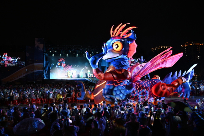 紙風車劇團今天發布新聞稿表示,「燈怪」籌備近2年,以海洋與陸地共生為背景,描繪瓜族與燈怪世代傳承、共生守護的故事。全場最受矚目焦點,莫過於3層樓高、身長11公尺的「燈燈國王」,由紙風車設計打造,內含5000多個手工機械零件,能移動四肢、張嘴噴氣、展翅、眨眼,甚至能與觀眾「互動對話」。