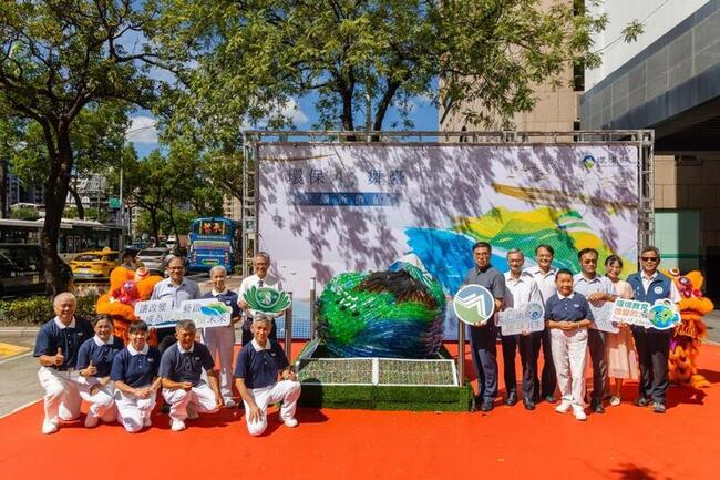 環境部首次展示的環保裝置藝術,是以回收寶特瓶創作的綠能愛地球,由慈濟基金會志工周秀琴從2025年地球日主題「Our Power, Our Planet」發想設計,並與志工團隊創作,提醒社會大眾日常消費與選擇對地球的影響。