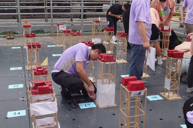 國研院國震中心提供資料指出,2025抗震盃競賽為期2天,昨天為模型製作,所有參賽隊伍要在5.5小時內,依大會規定主題「單一集中載重平台的塔型結構物」,利用細木條、熱熔膠、橡皮筋、紙張、細棉繩等材料完成模型製作,經裁判審查並決定模型載重後,才能參加今天的競賽。