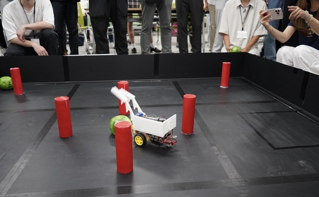 大阪工業大學場次則有大阪工業大學、北科大、泰國法政大學、中國同濟大學等合計40名學生投入,競賽主題取材自日本夏季傳統遊戲「蒙眼擊碎西瓜」,自走車需在限定場域中閃避障礙並精準擊中紙製充氣西瓜。