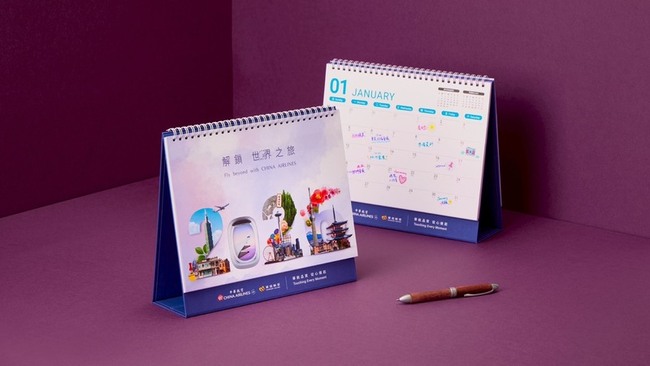 華航表示,桌曆預計10月底起開始發送合作企業、晶鑽及翡翠會員等,今年11月7日至10日的ITF台北國際旅展華航展攤現場活動,也將有機會現場獲得。